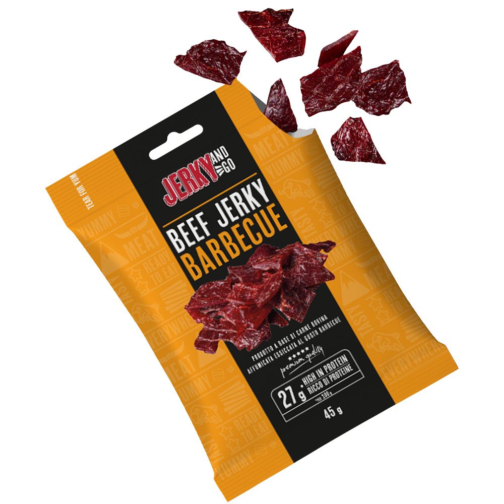 Zanima te isprobati jedan snack zdrav ali ukusan proizvod? Kušaj Jerky and Go Beef Jerky Barbecue, sočne trake sušenog goveđeg mesa obavijene preciznim i prepoznatljivim okusom barbecue umaka! Omamljujući miris i tamnocrvena boja samo su uvod u nevjerojatnu eksploziju okusa.