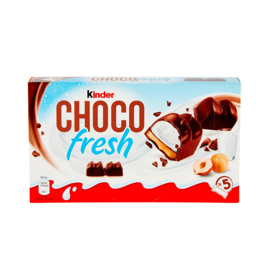 Kinder Choco Fresh je snack svježa i ukusna. Srce od kreme od mlijeka položeno na sloj kreme od lješnjaka i hrskavi čokoladni premaz: mješavina sastojaka iz snova koja će oduševiti tvoje okusne pupoljke. Uostalom, kao i svi Kinder proizvodi, i Kinder Choco Fresh je sinonim za dobrotu.